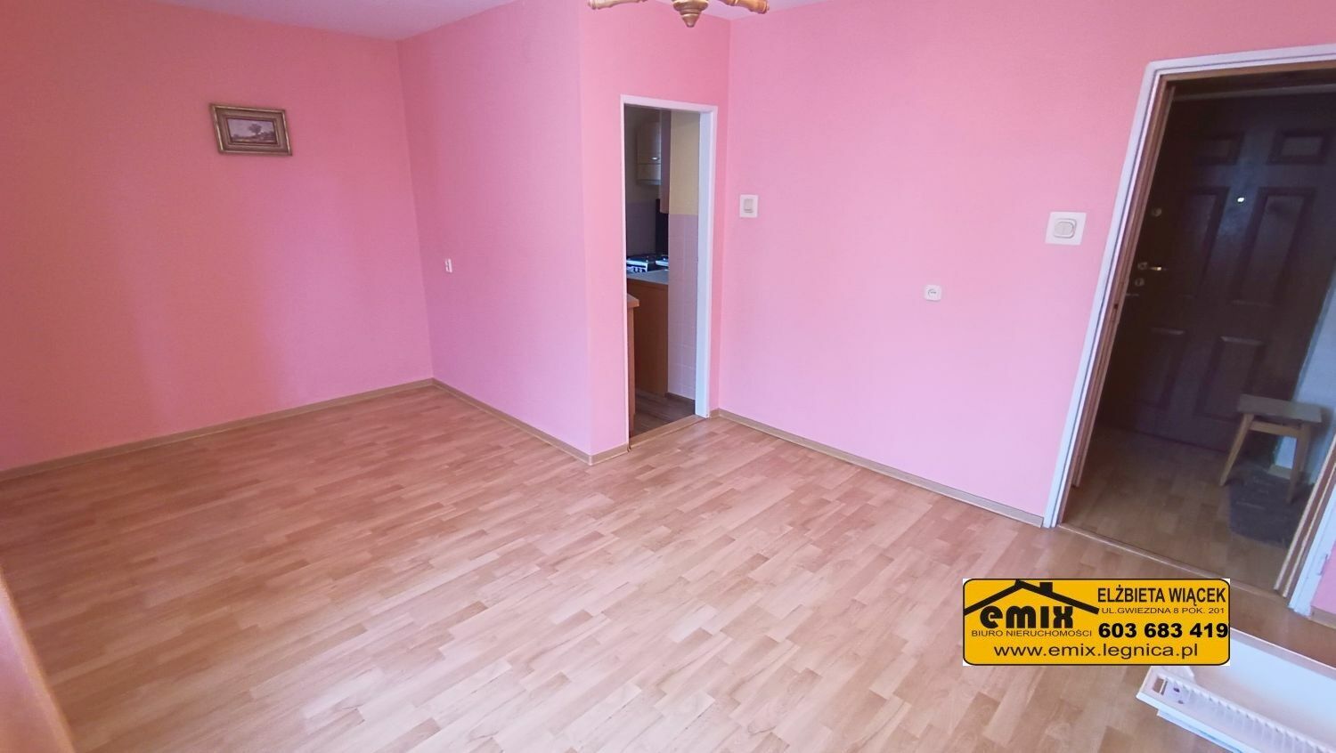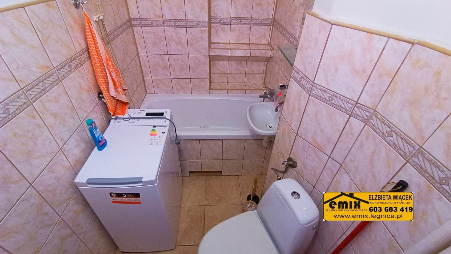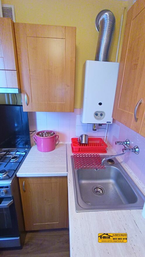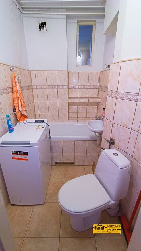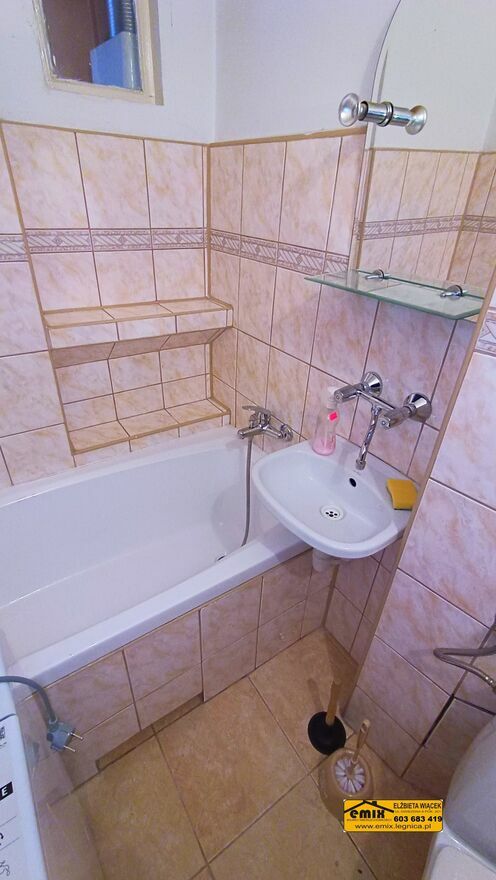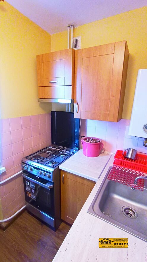 Emix Biuro Nieruchomości posiada w ofercie do wynajęcia 1 pokojowe mieszkanie (kawalerka) położone na III piętrze w bloku przy ulicy Wojska Polskiego w Złotoryi. Powierzchnia użytkowa mieszkania wynosi 26,10 m2. Lokal składa się jednego pokoju, kuchni, łazienki z WC i przedpokoju. Dla najemców udostępniona będzie także piwnica. Kuchnia z oknem, na podłodze panele, na ścianach kafelki i gładź. Wyposażona jest w kuchenne meble wiszące oraz stojące, w tym w szafkę ze zlewozmywakiem, kuchenkę gazowo elektryczną i nową, nieużywaną lodówkę. W pokoju na podłodze panele, na ścianach gładź szpachlowa. Obecnie jest nieumeblowany lecz w razie potrzeby zostanie wyposażony w miejsce do spania i mebelki pokojowe. Łazienka wspólna z WC, w kafelkach. Wanna, umywalka, toaleta i zamontowana nowa, nieużywana pralka. W przedpokoju dwie szafki typu pawlacz i wieszak na kurtki. Okna plastikowe, nowe drzwi wejściowe. Ogrzewanie sieciowe z podzielnikami. Ciepła woda z pieca gazowego typu junkers. Budynek jest ocieplony, klatka schodowa schludna, wejście do bloku wyposażone w domofon. Doskonała lokalizacja, gdyż jest to budynek na wysokości przystanku autobusowego. W okolicy sklepy, parking, teren zielony, boisko i niedaleko do centrum. Preferowany status najemcy to osoba samotna bądź bezdzietna para, pracujący, bez nałogów. Zapraszam do obejrzenia mieszkania z agentem.Cena 1.500 zł. miesięcznie + woda, prąd, gaz i śmieci.